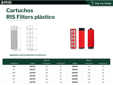 Cartuchos RIS Filters plástico – Ficha técnica